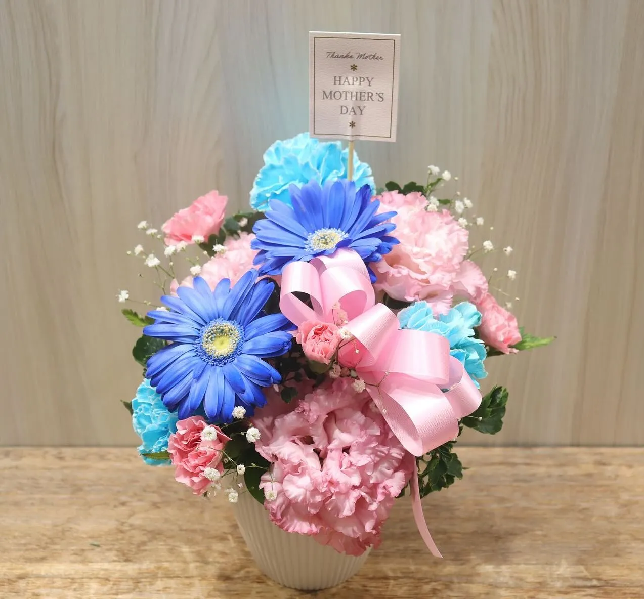 母の日のアレンジ商品のご案内パート2です✨先日掲載したチラシの商品を細かくご紹介していきます😉本日ご紹介させていただくのは4,000円(税抜)のアレンジ商品です💐アレンジDブルー・水色系💙🩵ちょっと珍し…